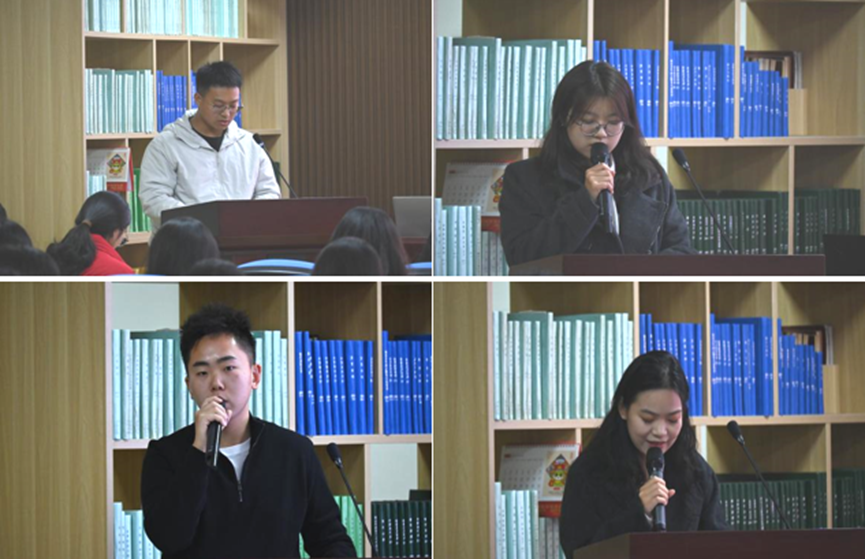 随后,研究生宣讲团于海宁同学带来《文质彬彬,薪传不辍——记詹福瑞先生》主题培训。她围绕詹福瑞先生的学术经历与治学精神展开分享,结合学校“双一流”学科建设目标,阐释詹福瑞先生理念的意义,鼓励全体成员传承优良学风。